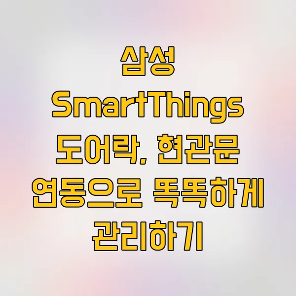 면책 조항: 본 콘텐츠는 삼성 SmartThings 플랫폼과 도어락 연동에 대한 일반적인 정보 제공을 목적으로 작성되었습니다. 특정 제품의 호환성, 설정 방법, 사용 시 발생할 수 있는 모든 문제에 대한 책임은 사용자 및 해당 제품 제조사에 있습니다. SmartThings 서비스는 관련 법규 및 정책 변경에 따라 내용이 달라질 수 있으며, 최신 정보는 삼성전자 SmartThings 공식 홈페이지를 참고하시기 바랍니다.